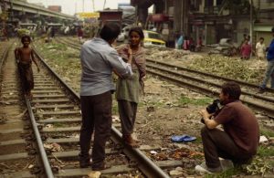 Meherunnesa, Enrico and Kollol during the shooting